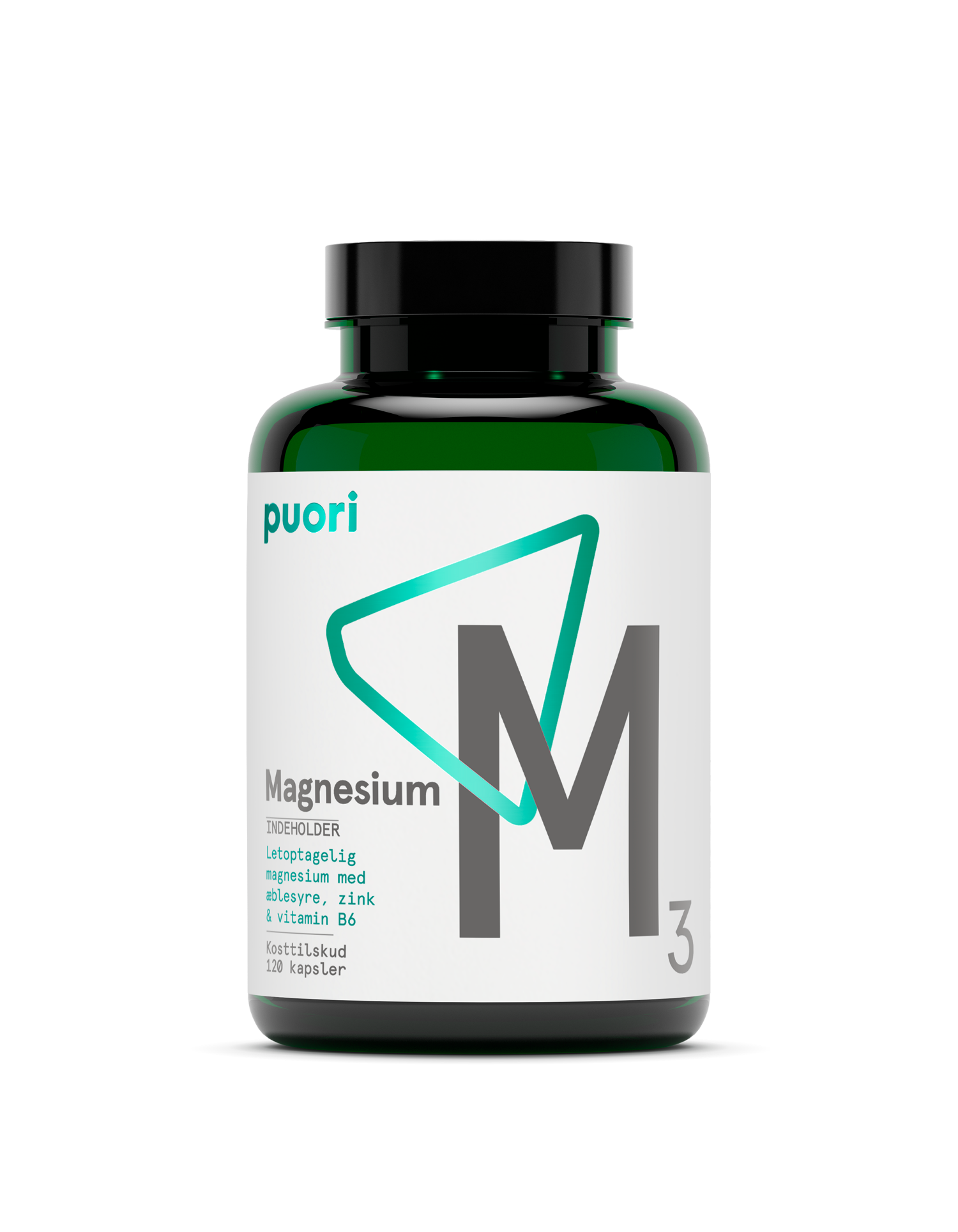 Puori M3 Indeholder magnesiumgluconat og -taurat, der begge er organiske og har høj biotilgængelighed. Ydermere indeholde Puori M3 æblesyre, zink og B6-vitamin, som fungerer i synergi med hinanden