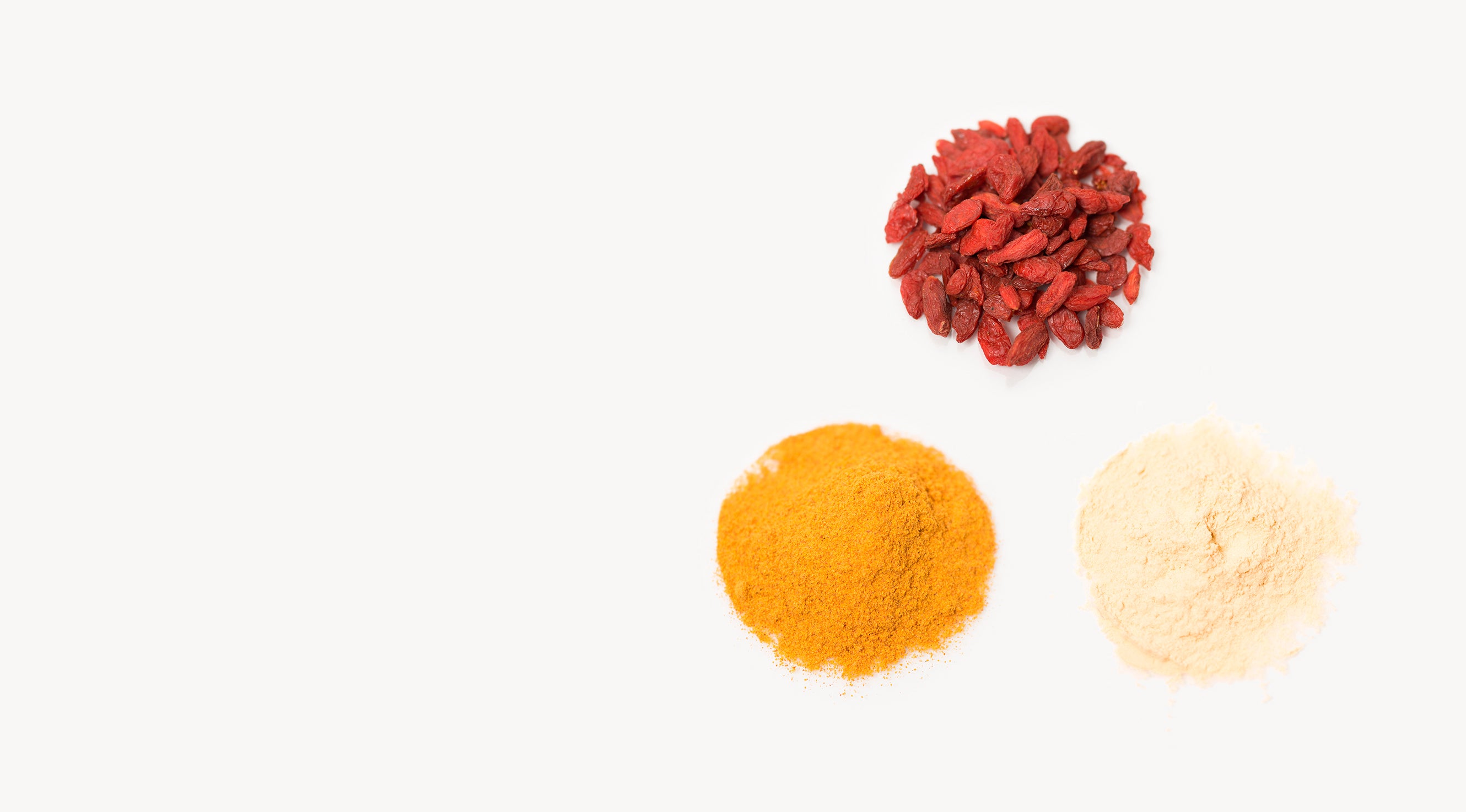 C-vitamin ekstraheret fra tre forskellige naturlige kilder: Acerola kirsebær, hyben rose og goji bær.